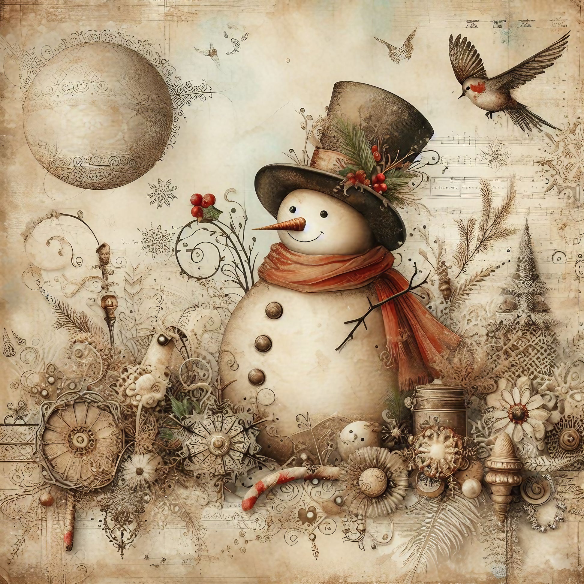Chaque modèle révèle une illustration féerique au charme d’antan : scènes hivernales, sapins décorés, gnomes adorables, paysages enneigés, flocons délicats, fées et motifs floraux… Dans un style sépia délicat, raffiné et chaleureux qui rappelle les cartes anciennes.