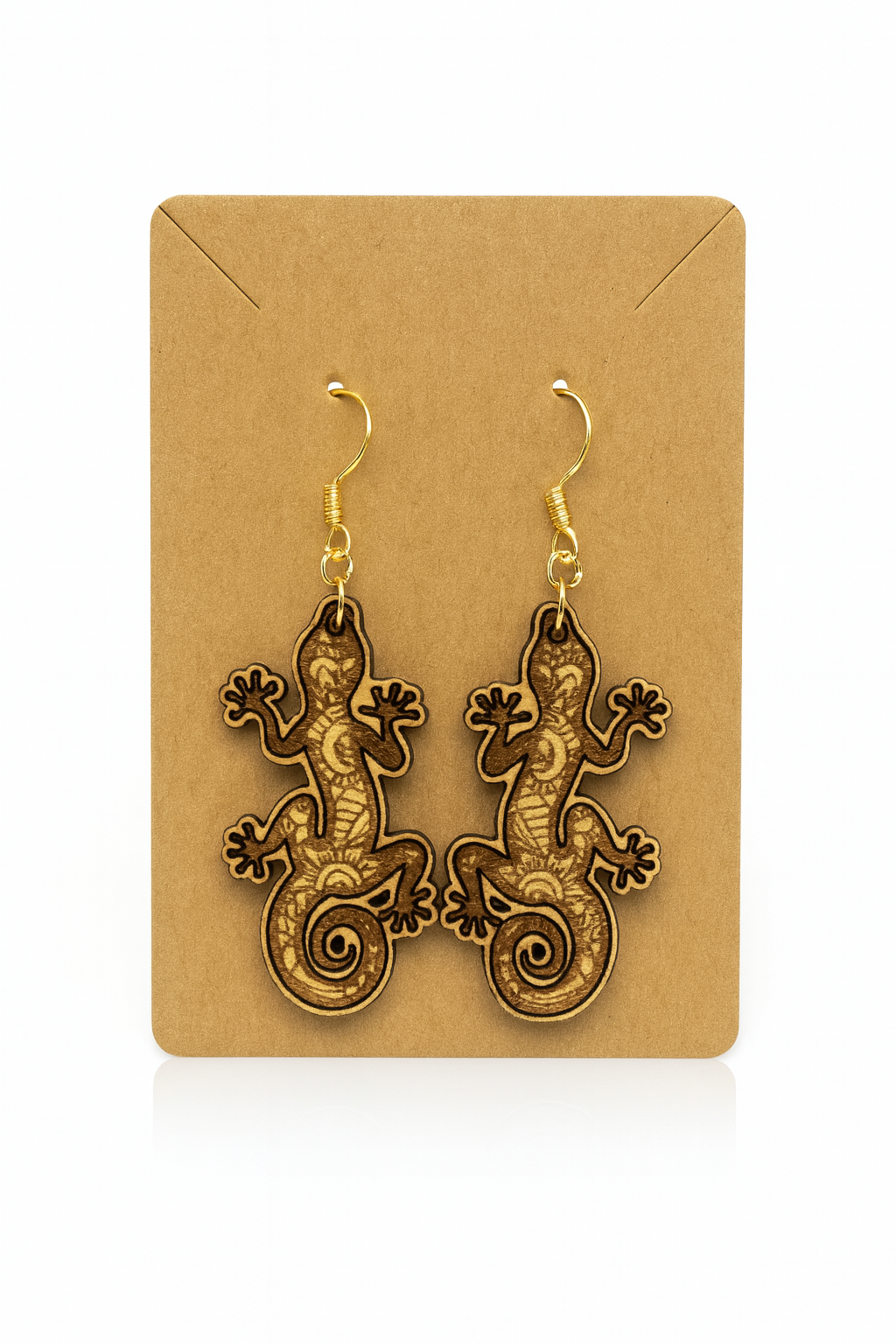 Ajoute une touche sauvage et élégante à ton style avec les boucles Salamandres. Découpées et gravées dans le bois avec finesse, elles offrent un design léger, naturel et plein de caractère. Idéal pour celles qui aiment les bijoux uniques et artisanaux.