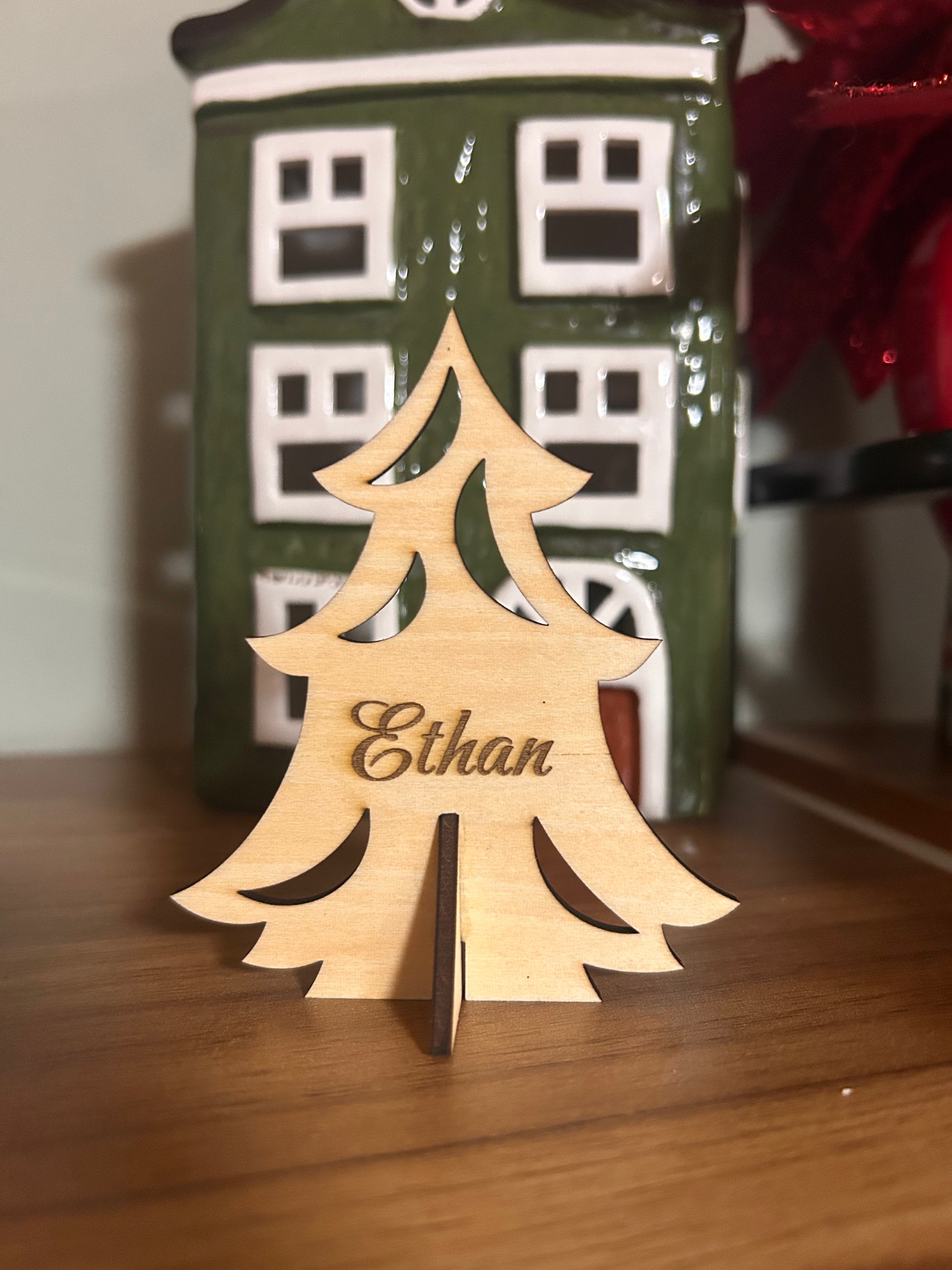 Sublimez votre table de fêtes avec ces adorables marque-places en bois gravés au prénom 🎄